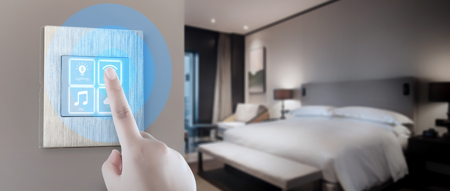 主臥:智能情景面板+背景音樂(lè)+起夜燈+環(huán)境監(jiān)測(cè)+緊急按鈕