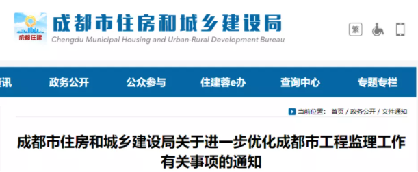 剛剛,成都市住建局發布《關于進一步優化成都市工程監理工作有關事項的通知》,自印發之日起施行,有效期五年。(成建委〔2018〕859號)同時廢止。